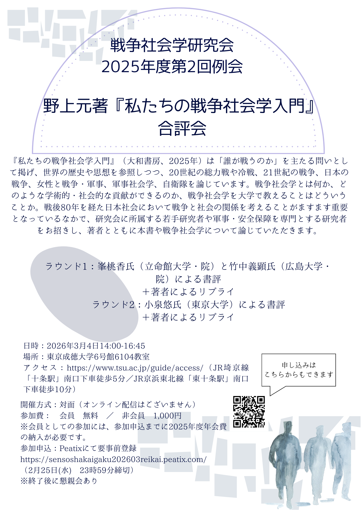 ・大会ポスターはこちらです。戦争社会学研究会第15回大会ポスター